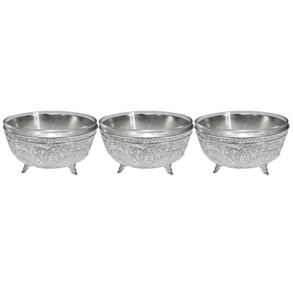 Set of 3 Dip and Container Bowls Filigree Silver Plated 5x2.5"