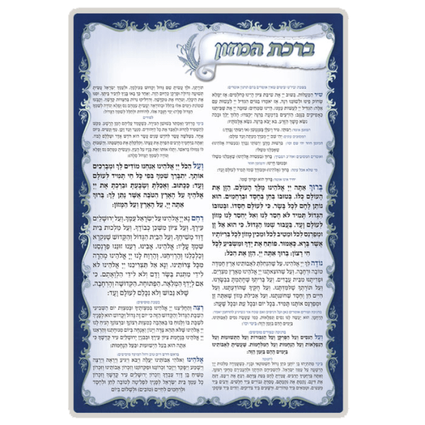 1 Page bencher Laminated Blue & Silver with Al hamichya 7.78x11.34" EDUT MIZRACH