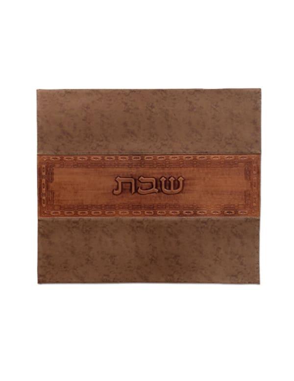 Challah Cover With Leather Stripe - Cognac 16x20"